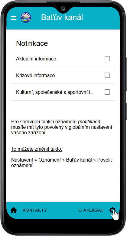 Aplikace Baťův kanál