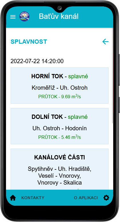Důležité data splavnosti Baťova kanálu poskytujeme v on-line režimu.